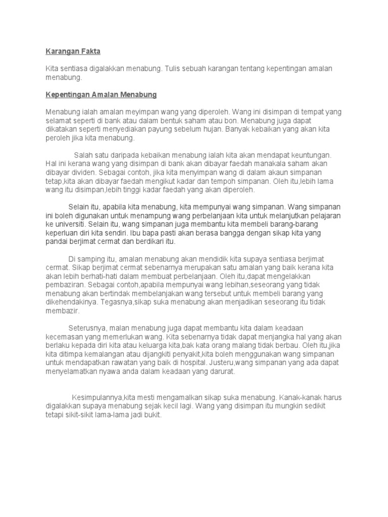 Contoh Karangan Faedah Menabung Pdf